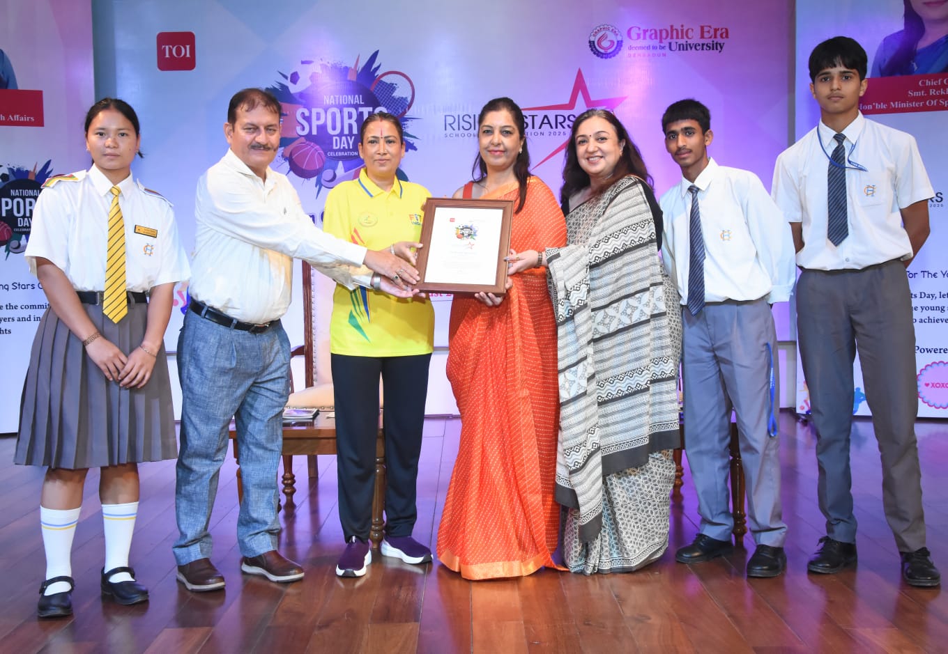 *देहरादून, 28 अगस्त।* खेल मंत्री रेखा आर्या ने गुरुवार को ग्राफिक एरा हिल यूनिवर्सिटी में आयोजित राइजिंग स्टार कार्यक्रम में 20 स्कूलों के चैंपियन खिलाड़ियों को सम्मानित किया। यह आयोजन राष्ट्रीय खेल दिवस के उपलक्ष में किया गया था।