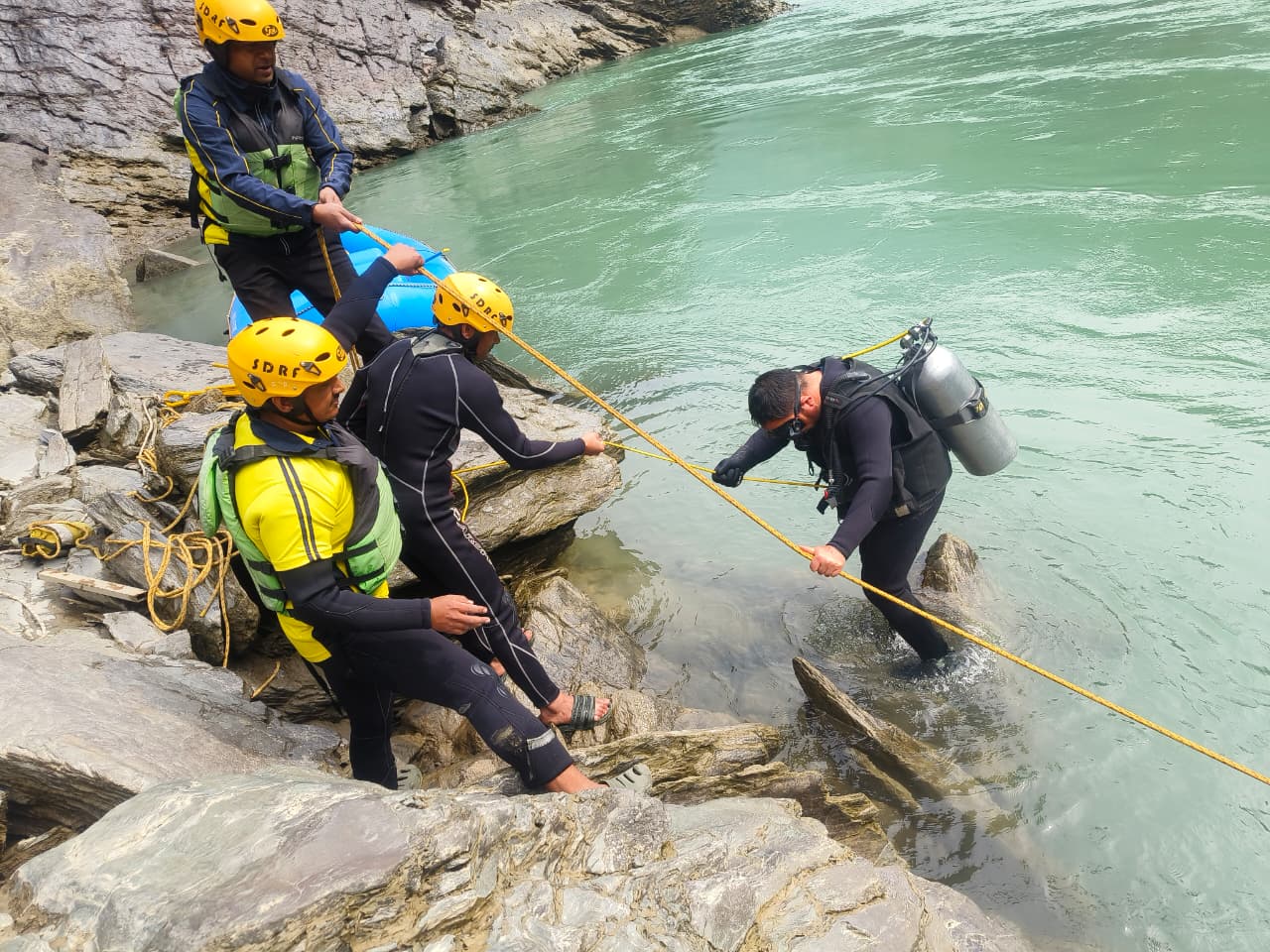 घटनास्थल पर पहुँचकर SDRF टीमों द्वारा मौके पर राफ्ट व डीप डाइविंग के माध्यम से गहन सर्च ऑपरेशन चलाया जा रहा है।