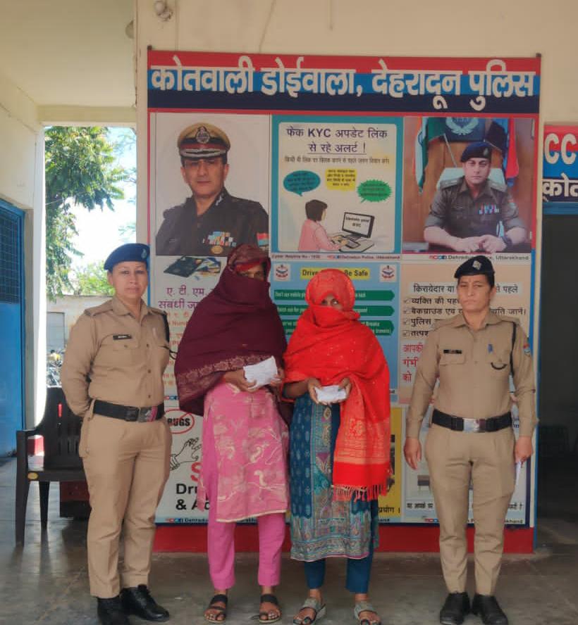 डोईवाला पुलिस द्वारा भुईया देवी मन्दिर, जौलीग्रान्ट, डोईवाला पर आकस्मिक चैकिंग के दौरान 02 महिला अभियुक्ताओ 01- सुमन पत्नी रवि कुमार निवासी माधमपुर कालोनी, मेरठ, उ0प्र0, उम्र 25 वर्ष से 130 ग्राम चरस तथा 02-कुन्ती पत्नी बुल्लू निवासी माधमपुर कालोनी, मेरठ, उ0प्र0 उम्र 30 वर्ष से 125 ग्राम अवैध चरस (दोनो से कुल 255 ग्राम अवैध चरस) बरामद होने पर उक्त दोनो महिला अभियुक्ताओ को नियमानुसार गिरफ्तार किया गया। अभियुक्ताओं के विरूद्ध कोतवाली डोईवाला पर मु0अ0सं0- 116/2026 धारा 8/20 एनडीपीएस एक्ट का अभियोग पंजीकृत किया गया।