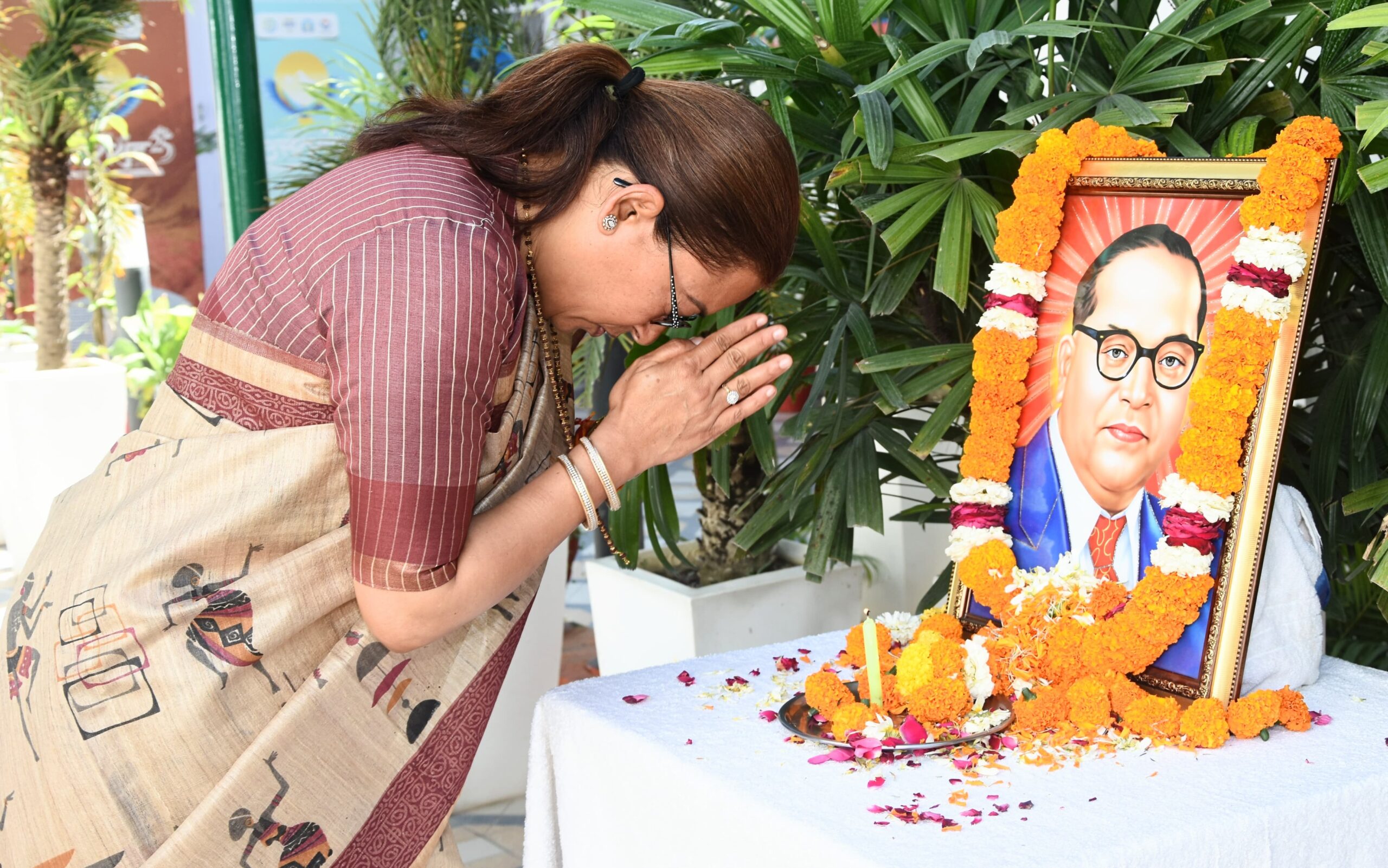 *देहरादून, 14 अप्रैल।* कैबिनेट मंत्री रेखा आर्या ने मंगलवार को संविधान निर्माता, भारत रत्न डॉ. भीमराव आंबेडकर की जयंती के अवसर पर शासकीय आवास पर उन्हें श्रद्धांजलि अर्पित की। इस दौरान उन्होंने बाबा साहेब के चित्र पर पुष्प अर्पित कर उनके योगदान को स्मरण किया।