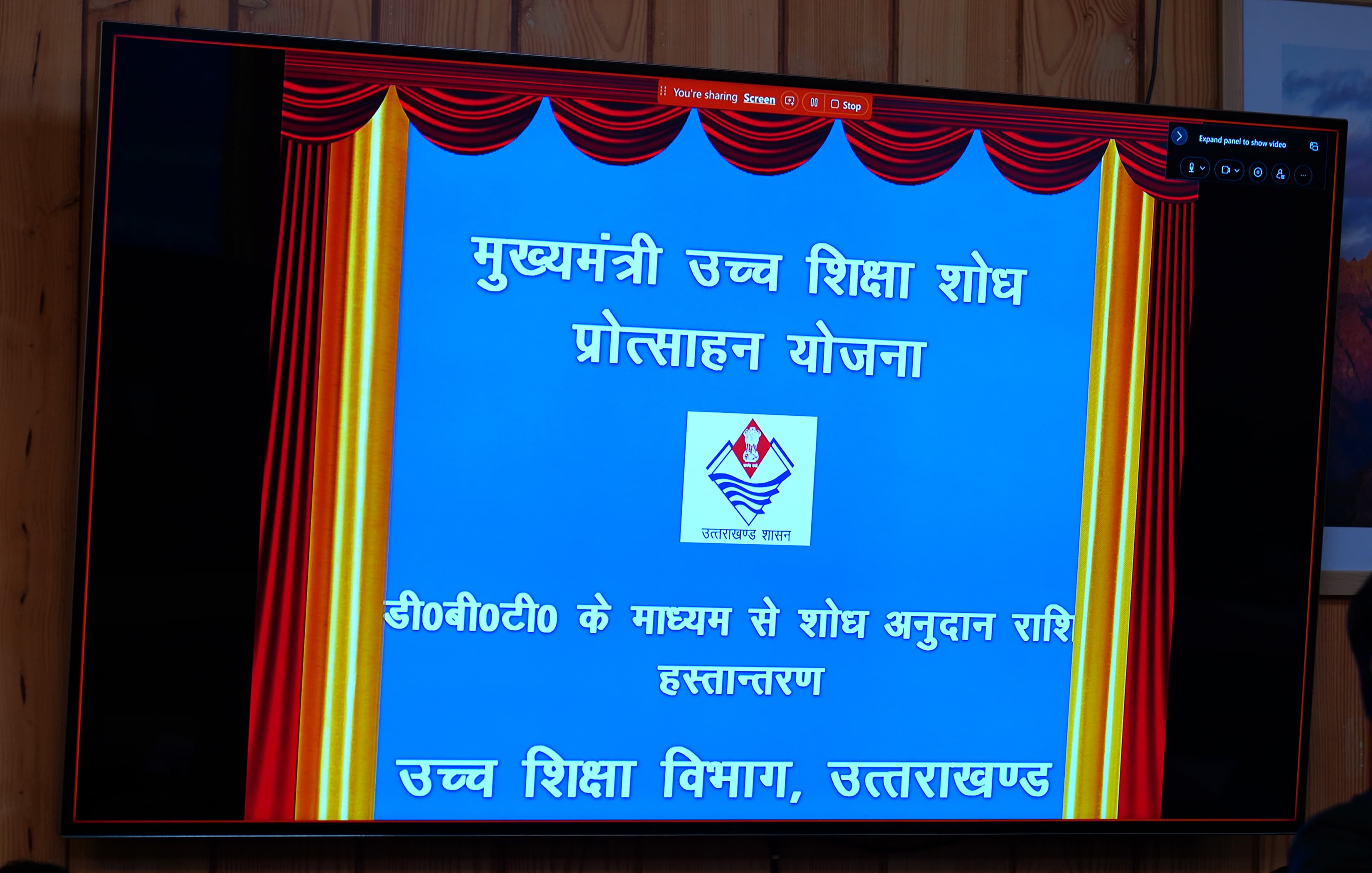 बैठक में बताया गया कि उच्च शिक्षा शोध प्रोत्साहन योजना एवं शोध अनुदान वितरण के अन्तर्गत प्राप्त हुये 500 शोध प्रस्तावों में से चयनित 44 शोध प्रस्तावों के लिये लगभग तीन करोड़ छियासठ लाख रूपये की शोध अनुदान राशि स्वीकृत की गयी है। इसकी प्रथम किश्त के रूप में लगभग एक करोड़ तिरासी लाख रूपये की अनुदान धनराशि सीधे डी0बी0टी0 के माध्यम से हस्तांतरित की गयी है।