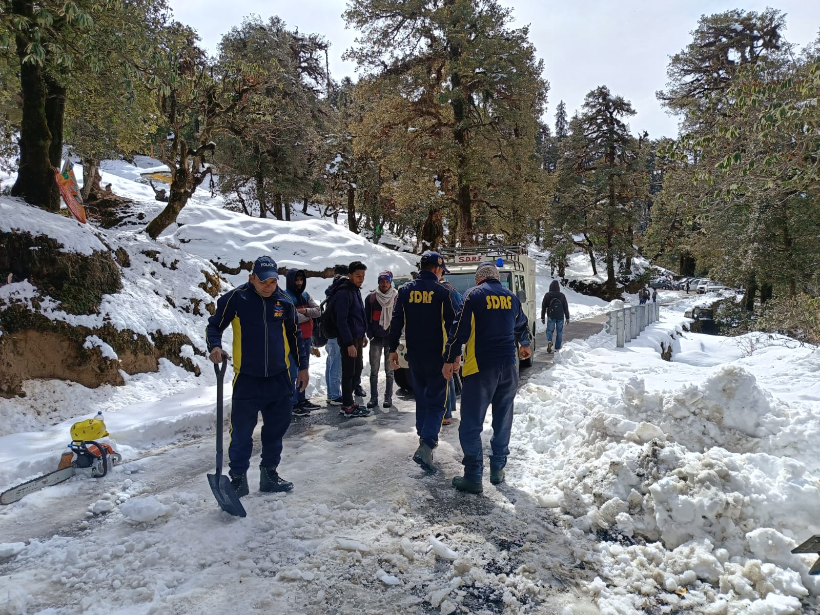 घटनास्थल पर पहुँचकर SDRF टीम द्वारा त्वरित कार्यवाही करते हुऐ सभी 15 पर्यटकों तक पहुँच बनायी व सभी को सुरक्षित बर्फ क्षेत्र से बाहर निकालकर व मार्ग में गिरे पेड़ को रेस्क्यू उपकरण की मदद से काटकर मार्ग को सुचारु किया गया व सभी यात्रियों को सुरक्षित स्थान पर पहुँचाया गया।