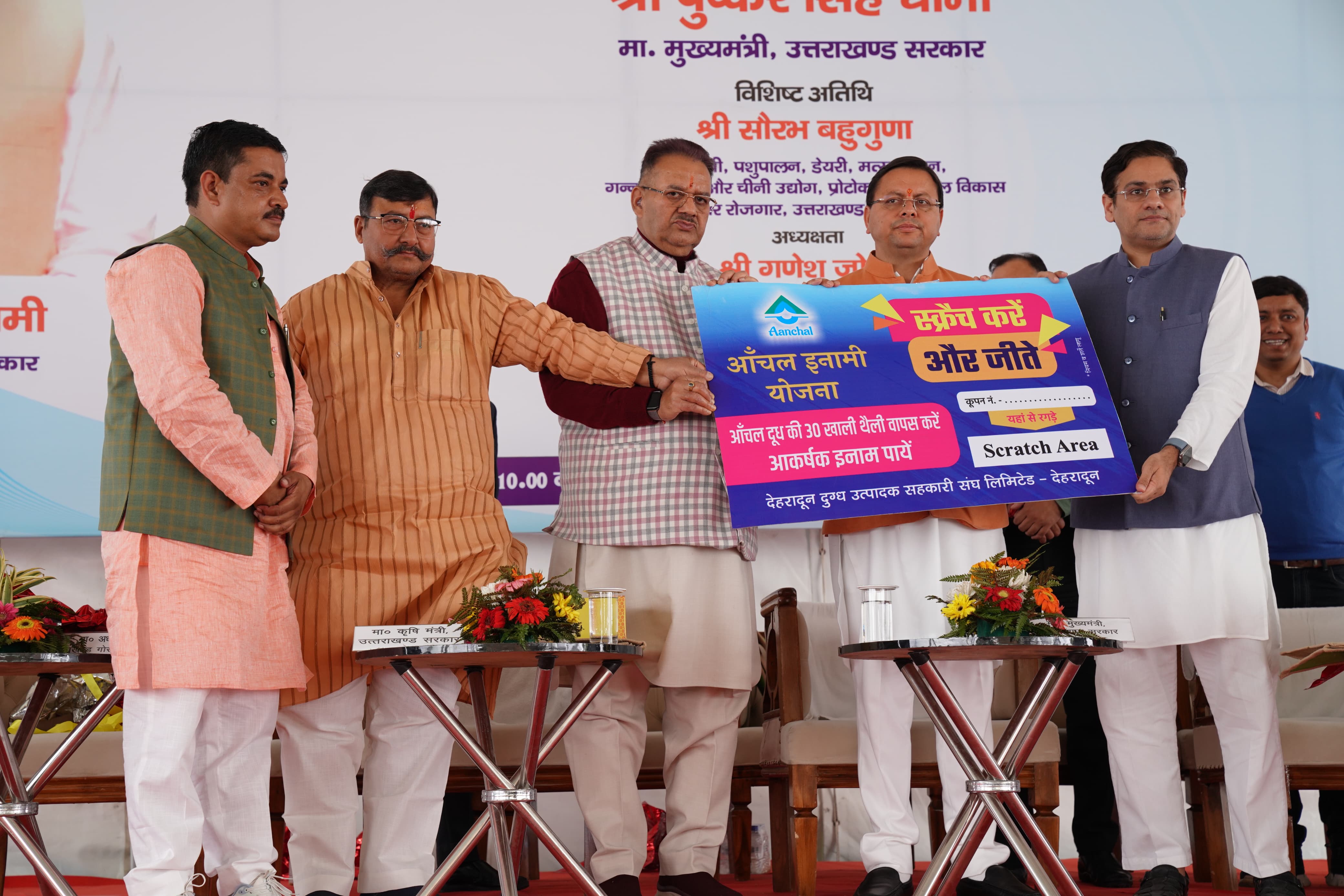 मुख्यमंत्री पुष्कर सिंह धामी ने मंगलवार को सर्वे ऑफ इण्डिया स्टेडियम, हाथीबड़कला, देहरादून में आयोजित कार्यक्रम में प्रतिभाग करते हुए राज्य पशुधन मिशन योजनान्तर्गत लाभार्थियों को चेक वितरण किए। उन्होंने आंचल ब्राण्ड के तहत आंचल शहद एवं आंचल इनामी योजना का भी शुभारम्भ किया।
