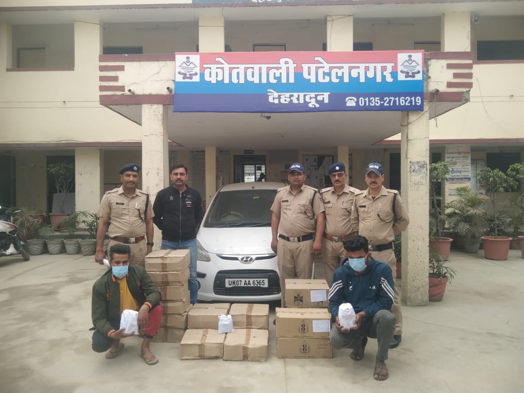 आगामी लोक सभा निर्वाचन 2024 के दृष्टिगत वरिष्ठ पुलिस अधीक्षक देहरादून द्वारा सभी अधीनस्थों को अपने-अपने क्षेत्र में अवैध नशा/मादक पदार्थों की तस्करी तथा अवैध धन की रोकथाम हेतु प्रभावी चैकिंग सुनिश्चित करने के निर्देश दियेे गये हैं। इसी क्रम में दिनांक 23-03-2024 को कोतवाली पटेलनगर पुलिस द्वारा कमला पैलेस तिराहा से सेन्ट जूज चैक की ओर जीएमएस रोड पर चैैकिंग के दौरान 02 अभियुक्तो को 576 पव्वे (12 पेटी) स्पेशल जाफरान देशी शराब मसालेदार, 144 पव्वे (3 पेटी) अग्रेजी शराब MCDOWELLS NO 1 व्हिस्की व 96 पव्वे (2 पेटी) अग्रेजी शराब 8 PM स्पेशल ग्रीन व्हिस्की व घटना मे प्रयुक्त वाहन (हुंडई I-10 UK07AA6365) के साथ गिरफ्तार किया गया, अभियुक्तो के विरुद्ध आबकारी अधिनियम के अंतर्गत अभियोग पंजीकृत किया गया है।