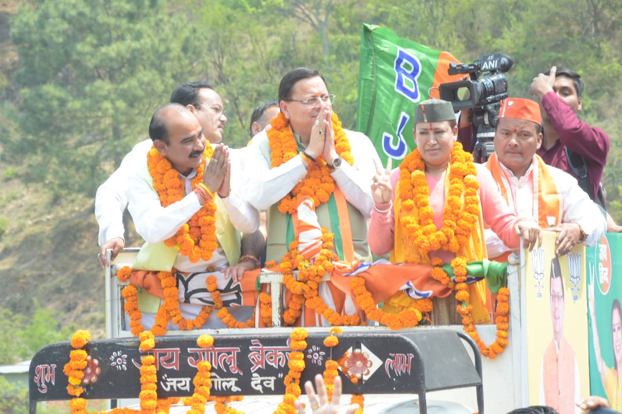 सीएम पुष्कर सिंह धामी ने आज लोकसभा अल्मोड़ा-पिथौरागढ़ के सोमेश्वर विधानसभा में विशाल रोड शो एवं विशाल जनसभा को संबोधित किया साथ ही बीजेपी प्रत्याशी अजय टम्टा के पक्ष में वोट मांगे।वहीं आज के रोड शो में भाजपा कार्यकर्ताओं की भारी भीड़ जुटी रही।सीएम पुष्कर सिंह धामी रोड शो के बाद रामलीला मैदान पहुंचे जहां भाजपा कार्यकर्ताओं ने सीएम धामी का फूलमालाओं से जोरदार स्वागत किया। उन्होंने कहा की नरेंद्र मोदी जी को तीसरी बार देश का प्रधानमंत्री बनाना है। उन्होंने कहा कि नरेंद्र मोदी के देश में प्रधानमंत्री बनने के बाद विश्व में भारत का डंका बजा है।इस दौरान सीएम धामी ने केंद्र सरकार की उपलब्धियां गिनाई।उन्होंने कहा कि पीएम मोदी ने देश हित में अनेक बड़े फैसले लिए हैं। उन्होंने कहा कि प्रधानमंत्री मोदी तीसरी बार प्रधानमंत्री बनने के भारत 2047 तक विकसित भारत बनाने की संकल्पना पूरी हो जाएगी।
