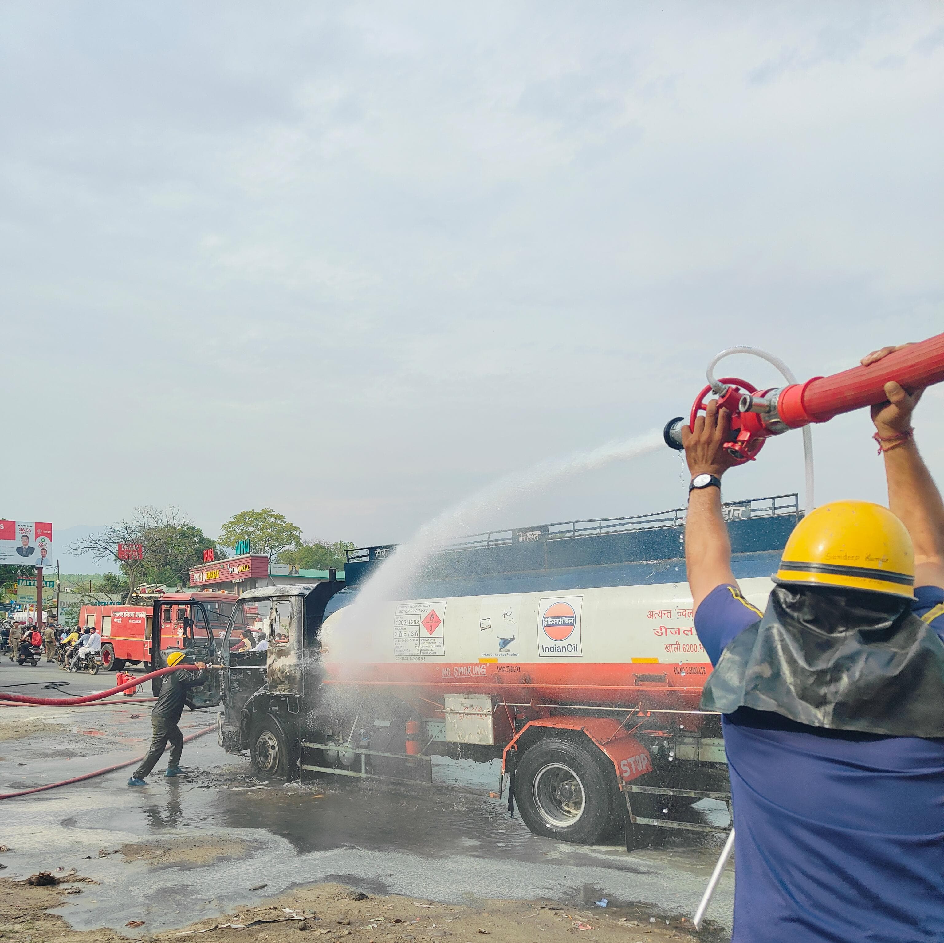 कन्ट्रोल रूम के माध्यम से थाना प्रेमनगर को सूचना प्राप्त हुई कि केहरी गांव, लॉ कॉलेज के पास मुख्य हाईवे पर पैट्रोल से भरे एक टैंकर में आग लग गई है, सूचना की संवेदनशीलता के दृष्टिगत त्वरित कार्यवाही करते हुए थाना प्रेमनगर से पुलिस बल तथा फायर स्टेशन देहरादून, सेलाकुई तथा ओ0एन0जी0सी0 से दमकल के वाहन तथा NDRF की टीम मौके पर पहुँची तथा मुख्य हाईवे पर दोनो ओर से रूट डायवर्ट करते हुए घटनास्थल पर वाहनों का आवागमन बंद कराया गया। दमकल के वाहनों द्वारा त्वरित कार्यवाही करते हुए टैंकर में लगी आग पर समय रहते काबू पाया गया। घटना की सूचना पर उच्चाधिकारीगण तत्काल मौके पर पहुंचे तथा घटना के कारणों के संबंध में जानकारी प्राप्त की। उक्त पैट्रोल टैंकर में 14 हजार लीटर पैट्रोल भरा हुआ था। दमकल कर्मियों द्वारा समय रहते आग पर काबू पाया गया, अन्यथा बडी अनहोनी घटित हो सकती थी। आग लगने के कारणों की जाँच की जा रही है।