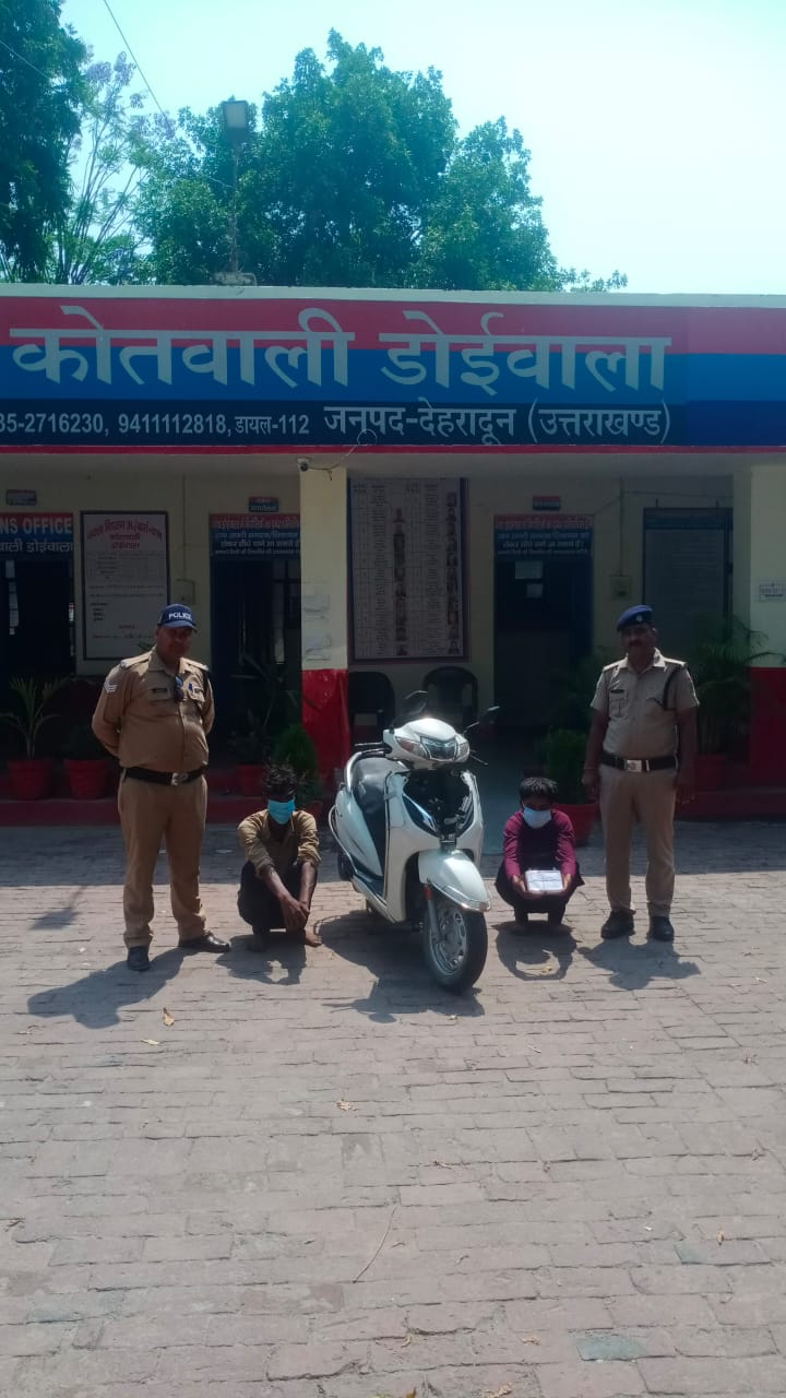 घटना के सम्बन्ध मे उच्चाधिकारीगणो को अवगत कराते हुए वरिष्ठ पुलिस अधीक्षक देहरादून द्वारा दिये गए निर्देशों पर कोतवाली डोईवाला पर पुलिस टीम गठित की गयी, गठित टीम द्वारा घटनास्थल व आसपास के स्थानो पर CCTV कैमरो का अवलोकन कर उच्चास्तरीय सुरागरसी-पतारसी कर सूचना तन्त्र को सक्रिय किया गया । घटना के अनावरण हेतु पुलिस टीम द्वारा की गई त्वरित एवं प्रभावी कार्यवाही के फलस्वरूप मुखबिर की सूचना के आधार पर पुलिस टीम द्वारा दिनांक 10/05/2024 को काली माता मन्दिर के पास, लालतप्पड पर चैकिंग के दौरान घटना को अंजाम देने वाले दोनों अभियुक्तों 01-मनीष त्यागी पुत्र श्री लोकेश त्यागी तथा 02- भरत पुत्र भीमाराम के कब्जे से घटना मे लूटी गयी स्कूटी संख्या- UK07VV- 8066 सफेद रंग के साथ गिरफ्तार किया गया, अभियुक्तों की तलाशी लेने पर उनके पास से घटना में लूटी गई चैन, एक आधार कार्ड, रूपये 2000/- नगद बरामद हुए। दोनों अभियुक्तों को समय से मा0 न्यायालय के समक्ष पेश किया जाएगा।