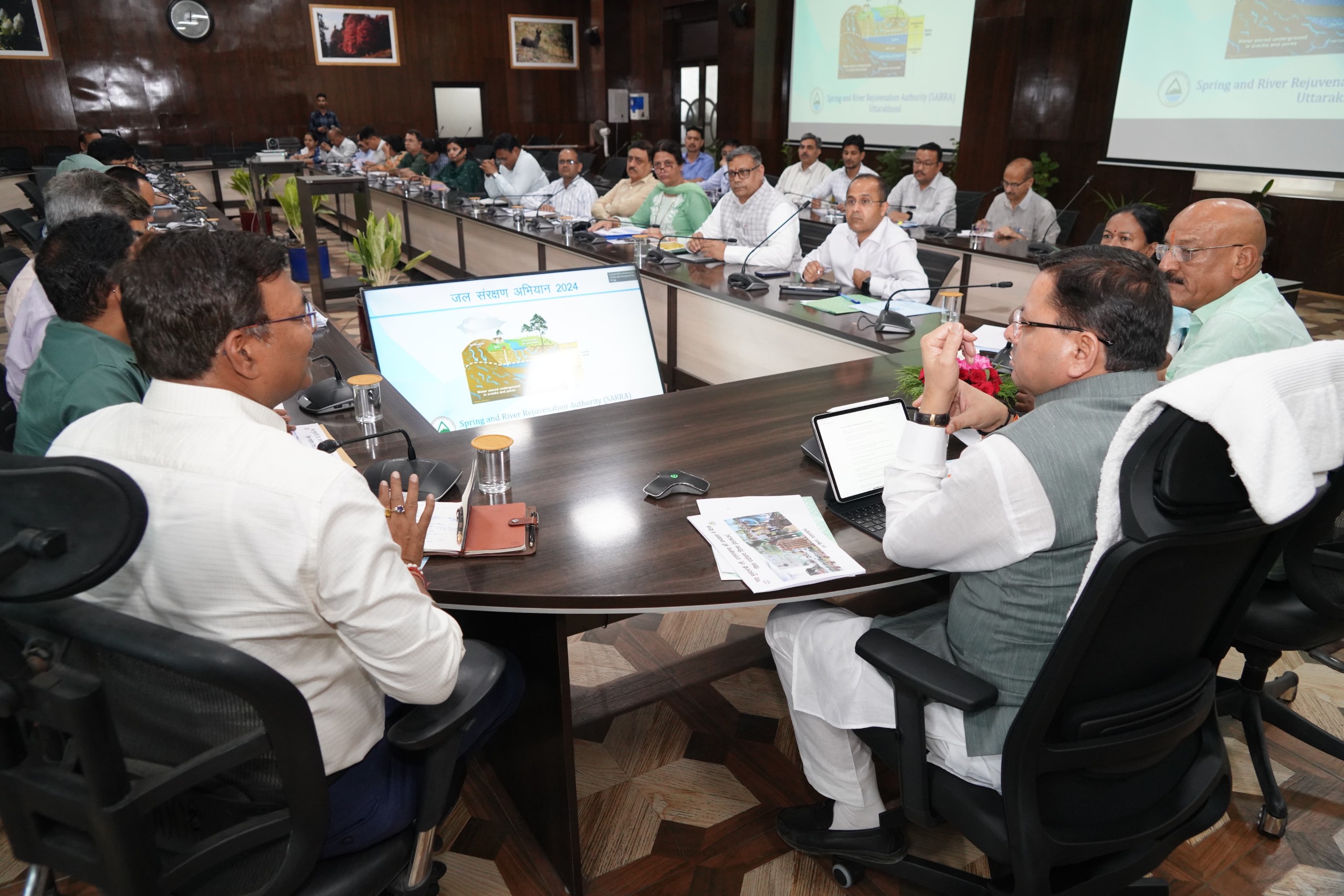 मुख्यमंत्री पुष्कर सिंह धामी ने जल संरक्षण और वृक्षारोपण अभियान, 2024 के सफल क्रियान्वयन के लिए अधिकारियों को निर्देश दिये कि जल संरक्षण और जल संचय की दिशा में तेजी से कार्य किये जाए। नदियों और जल स्रोतों के पुनर्जीवीकरण के लिए प्रभावी प्रयास किये जाएं। इसके लिये सभी संबंधित विभाग समन्वय बनाकर कार्य करें। 10 से 16 जून 2024 तक प्रदेशभर में जल उत्सव सप्ताह व्यापक स्तर पर मनाया जाय। यह निर्देश मुख्यमंत्री ने बुधवार को सचिवालय में आयोजित बैठक में दिये।