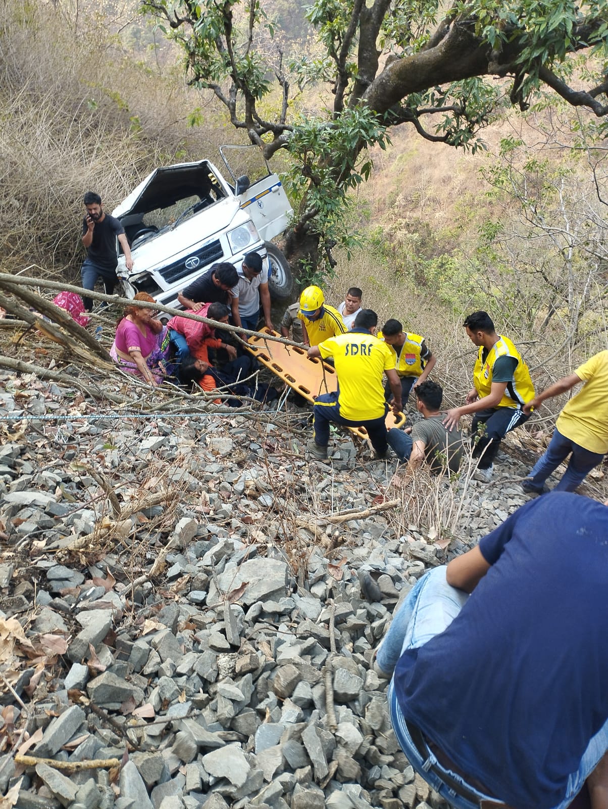 उक्त वाहन में कुल 09 लोग सवार थे जो सतपुली से कोटद्वार पूजा में सम्मिलित होने जा रहे थे। SDRF रेस्क्यू टीम द्वारा कड़ी मशक्कत करते हुए घायलों तक पहुँच बनाई। SDRF रेस्क्यू टीम ने स्थानीय पुलिस के साथ मिलकर अत्यधिक विषम परिस्थितियों में सभी घायलों को स्ट्रेचर के माध्यम से मुख्य मार्ग तक पहुँचाकर एंबुलेंस के माध्यम से सतपुली चिकित्सालय भेजा गया है। घायलों को हंस फाउंडेशन चिकित्सालय भेजा गया है,जहाँ वे उपचाराधीन है।