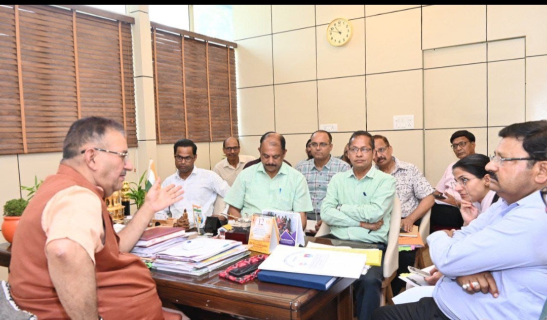 सैनिक कल्याण मंत्री गणेश जोशी ने आज कैंप कार्यालय में सैन्य धाम के निर्माण से संबंधित अधिकारियों और जिला प्रशासन के अधिकारियों के साथ निर्माण कार्यों की समीक्षा की। बैठक के दौरान सैनिक कल्याण मंत्री गणेश जोशी ने निर्माण कार्यों की प्रगति की जानकारी ली। सैनिक कल्याण मंत्री गणेश जोशी ने निर्माण कार्यों को तेज गति से कार्य करने के अधिकारियों को निर्देशित किया।