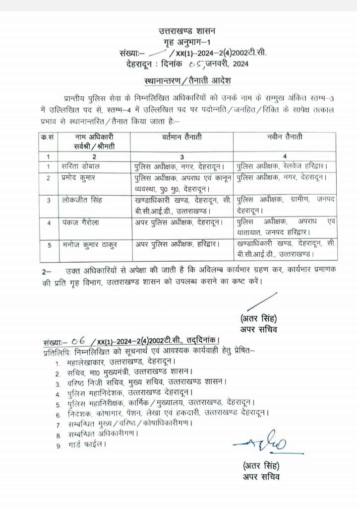 उत्तराखंड पुलिस में आई पी एस और पी पी एस के ताबदले हुये और अल्मोड़ा और चम्पावत के पुलिस अधीक्षक बदले गये देखे लिस्ट👇👇 Post navigation उत्तराखंड: 4000 अतिथि शिक्षकों के लिए खुशखबरी, बढ़ेगा मानदेय शिक्षा विभाग से मांगा प्रस्ताव = डॉ धन सिंह रावत मुख्यमंत्री ने की परिवहन विभाग की समीक्षा बैठक