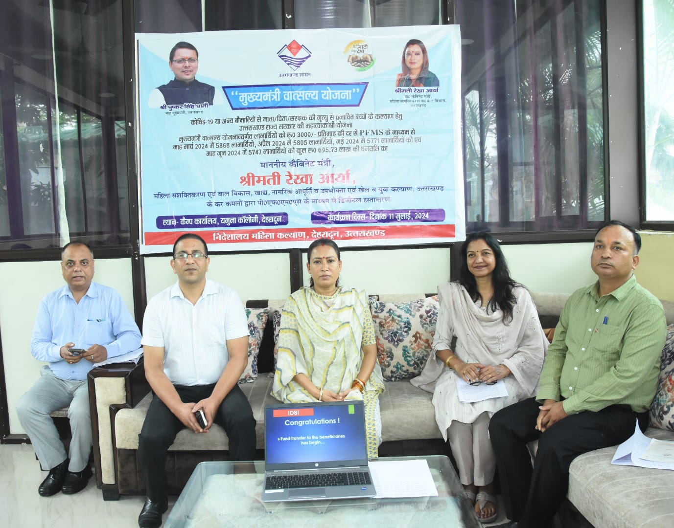 कोरोनाकाल में कोरोना महामारी समेत अन्य बीमारियों से माता-पिता व संरक्षक खो चुके बच्चों की देखभाल एवं पुनर्वास के लिए सरकार गंभीरता से जुटी है। इस कड़ी में महिला सशक्तीकरण एवं बाल विकास मंत्री रेखा आर्या ने गुरुवार को यमुना कॉलोनी स्थित कैम्प कार्यालय में मुख्यमंत्री वात्सल्य योजना के 5747 लाभार्थियों को उनके बैंक खातों में मार्च 2024 से जून 2024 तक (चार माह) की 06 करोड़ 95 लाख 73 हजार रुपये की सहायता राशि का डिजिटल माध्यम से हस्तांतरण किया। इस योजना में ऐसे बच्चों को 21 वर्ष की आयु तक तीन हजार रुपये प्रतिमाह सहायता राशि देने का प्रविधान है।