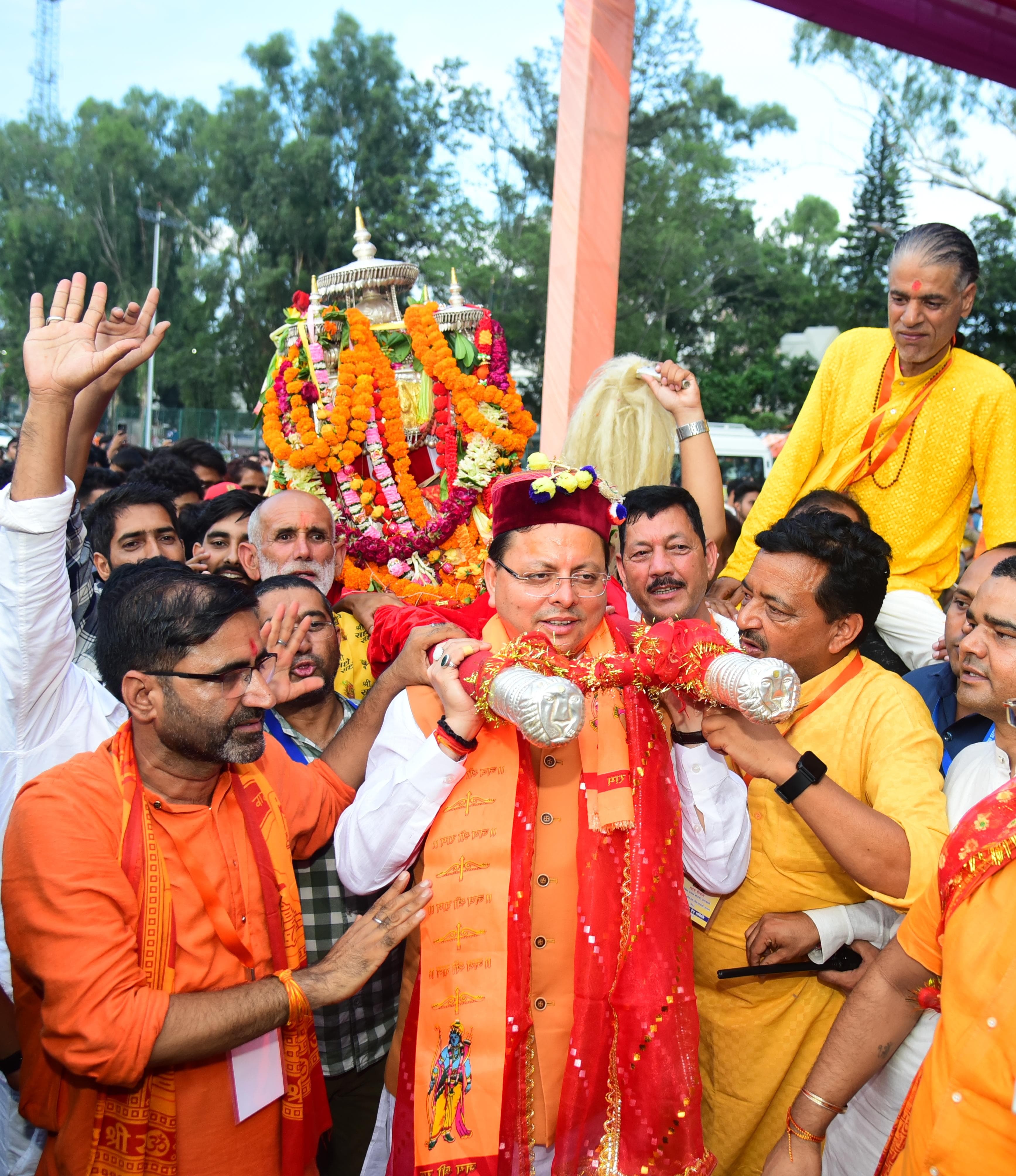 मुख्यमंत्री पुष्कर सिंह धामी मंगलवार को परेड़ ग्राउण्ड में बाबा बौखनाग की डोली के अयोध्या धाम भ्रमण कार्यक्रम में शामिल हुए। उन्होंने बाबा की पूजा अर्चना कर प्रदेश की खुशहाली की कामना की तथा डोली को स्वयं कंधा देकर रवाना किया। मुख्यमंत्री ने बाबा बौखनाग डोली समिति के सदस्यों का स्वागत करते हुए कहा कि उनकी भी बाबा बौखनाग के प्रति गहरी आस्था है। बाबा की कृपा पूरे उत्तराखण्ड पर है। इसका उदाहरण सिलक्यारा सुरंग में फंसे श्रमिकों की सकुशल रिहाई है। जिनकी कृपा से यह असंभव कार्य संभव हो सका।