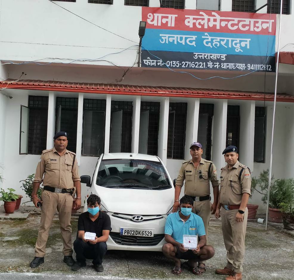 सूचना पर पुलिस टीम द्वारा झील तिराहे के पास चेकिंग के दौरान सामने की ओर से आ रही सफेद रंग की EON कार को रुकने का इशारा किया तो वाहन चालक द्वारा वाहन को भगाने का प्रयास किया गया, किंतु पुलिस टीम द्वारा तेजी व फुर्ती से कार सवार व्यक्तियों को मौके पर ही पकड़ लिया गया। वाहन सवार व्यक्तियों से नाम पता पूछने पर उनके द्वारा अपना नाम सरबजीत सिंह पुत्र जरनेल सिंह निवासी न्यू अरर्जेश नगर, थाना बटला रोड अमृतसर पंजाब तथा सन्नी सिंह पुत्र बल्ली सिंह निवासी 62 गली नंबर 02 नियर भवानी पैलेस थाना स्योहाता जिला अमृतसर पंजाब उम्र 35 वर्ष बताया।