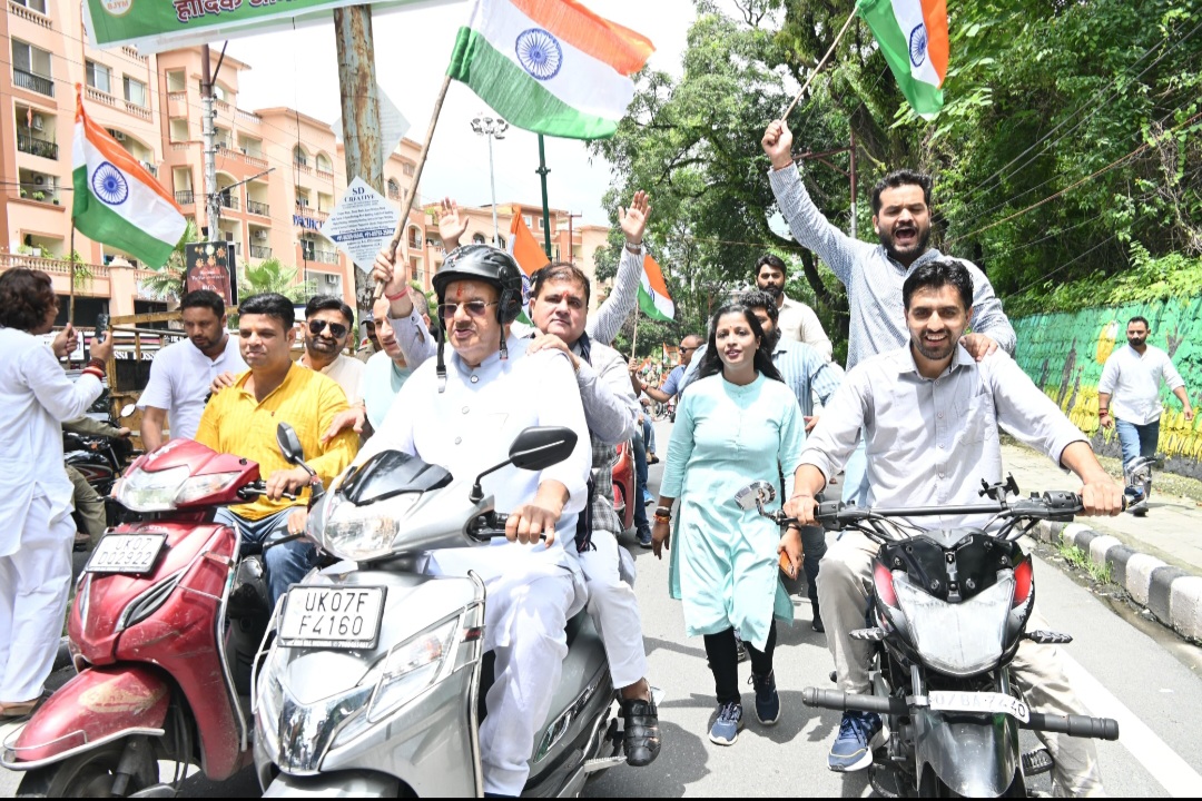 देहरादून, 12 अगस्त। सोमवार को भारतीय जनता पार्टी के प्रदेश अध्यक्ष महेंद्र भट्ट और कैबिनेट मंत्री गणेश जोशी ने प्रधानमंत्री नरेंद्र मोदी के देशव्यापी अभियान हर घर तिरंगा के अंतर्गत भव्य तिरंगा यात्रा का शुभारंभ किया। इस तिरंगा यात्रा को भारतीय जनता पार्टी मसूरी विधानसभा आयोजित किया गया, जो देहरादून के किशनपुर डाईवर्जन से प्रारंभ होकर दिलाराम चौक होते हुए हाथीबड़कला में संपन्न हुई। इस तिरंगा यात्रा में पार्टी कार्यकर्ताओं के साथ सैंकड़ों की संख्या में युवाओं, स्थानीय लोगों ने बढ़चढ़ कर हिस्सा लेते भारत माता की जय नारों के साथ सभी देश भक्ति से ओतप्रोत नजर आए।