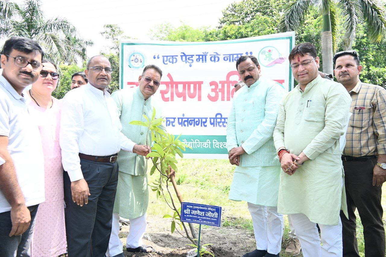 पंतनगर, 14 अगस्त। जनपद ऊधमसिंह नगर प्रभारी/ कृषि मंत्री गणेश जोशी ने आज गोविंद बल्लभ पंत कृषि प्राद्योगिकी विश्वविद्यालय पंतनगर के परिसर में एक पेड़ मां के नाम अभियान के अंतर्गत अपनी मां के सम्मान में रुद्राक्ष के पौधे का रोपण कर पर्यावरण संरक्षण का संदेश दिया। इस दौरान कृषि मंत्री गणेश जोशी ने पर्यावरण के संरक्षण और उसके संवर्धन के लिए प्रकृति को हरा भरा बनाए हेतु अपनी सहभागिता अधिक से अधिक सुनिश्चित करने का आव्हान किया।