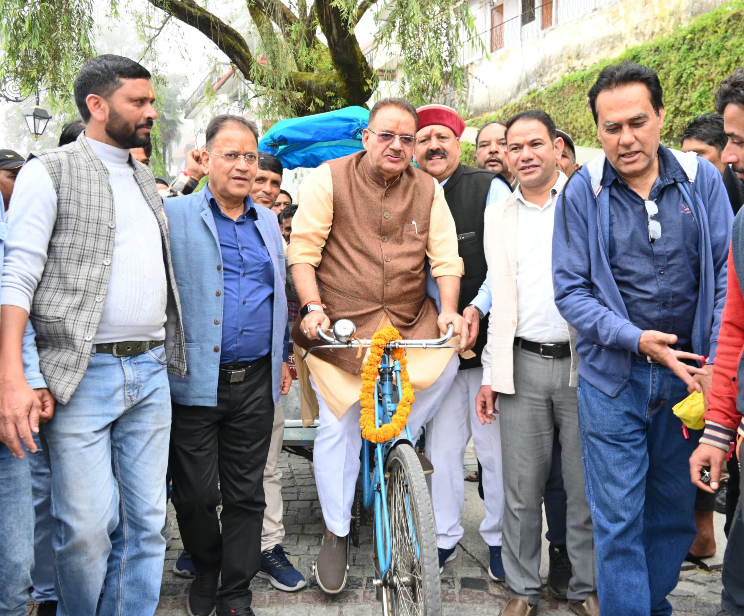 मसूरी, 17 सितंबर। कैबिनेट मंत्री गणेश जोशी ने मसूरी पहुंचकर प्रधानमंत्री नरेन्द्र मोदी के जन्मदिवस के अवसर पर आयोजित स्वच्छता ही सेवा कार्यक्रम के तहत मसूरी वासियों और पर्यावरण मित्रों को स्वच्छता की शपथ दिलाई और प्रधानमंत्री नरेन्द्र मोदी के जन्मदिवस के अवसर पर मसूरी के 7 साइकिल रिक्शा चालकों को विगत दिनों आपदा के कारण दुर्घटनाग्रस्त हुई साइकिल रिक्शा के स्थान पर अपने निजी सहयोग से साइकिल रिक्शा भेंट किया। कैबिनेट मंत्री ने माल रोड में साइकिल रिक्शा भी चलाया और साइकिल रिक्शा की सवारी भी की। उन्होंने कहा कि पीएम मोदी ग़रीब कल्याण, किसान और जवान की चिंता करते हैं और आज ऐसा शुभ दिन है कि उनके जन्मदिवस के अवसर पर रोज़ी-रोटी और आर्थिकी की समस्या को ध्यान में रखते हुए सात रिक्शा चालकों को नए रिक्शा भेंट किए हैं।