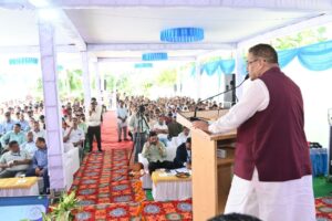 देहरादून, 20 सितंबर। प्रधानमंत्री नरेन्द्र मोदी के वर्धा महाराष्ट्र में ‘पीएम विश्वकर्मा’ योजना की पहली वर्षगांठ कार्यक्रम का निरंजपुर स्थित राष्ट्रीय कौशल प्रशिक्षण संस्थान देहरादून में वीडियो कॉन्फ्रेसिंग के माध्यम से प्रसारण किया गया। कार्यक्रम में प्रदेश ग्रामीण विकास मंत्री गणेश जोशी वर्चुअल माध्यम से कार्यक्रम में जुड़े। इस अवसर पर ग्राम्य विकास मंत्री गणेश जोशी ने योजना के लाभार्थियों को प्रमाणपत्र वितरित किए तथा स्टोल का अवलोकन किया। इस दौरान उन्होंने परिसर पर रुद्राक्ष के पौधे का रोपण भी किया।