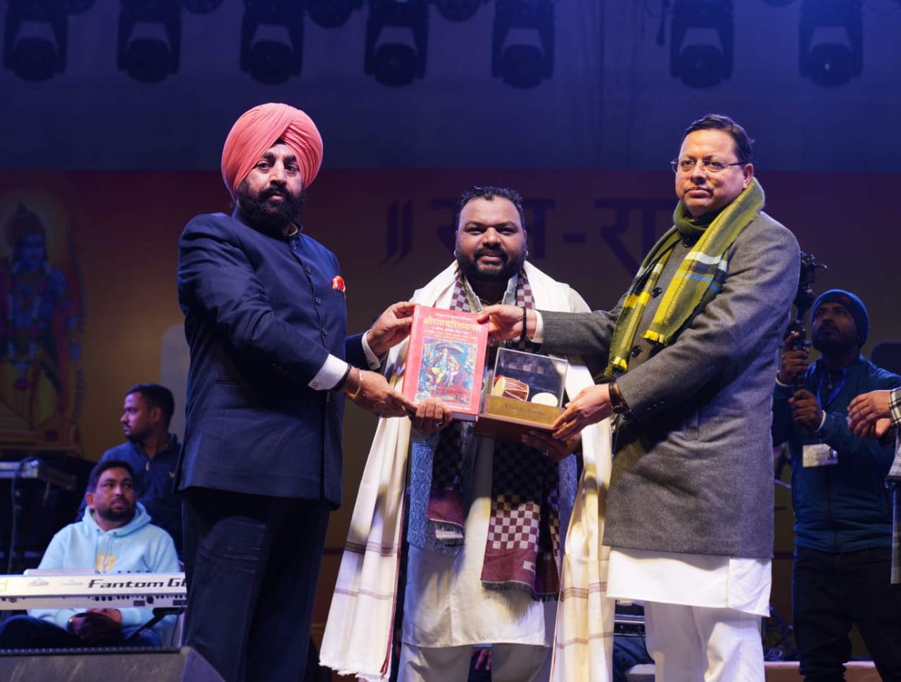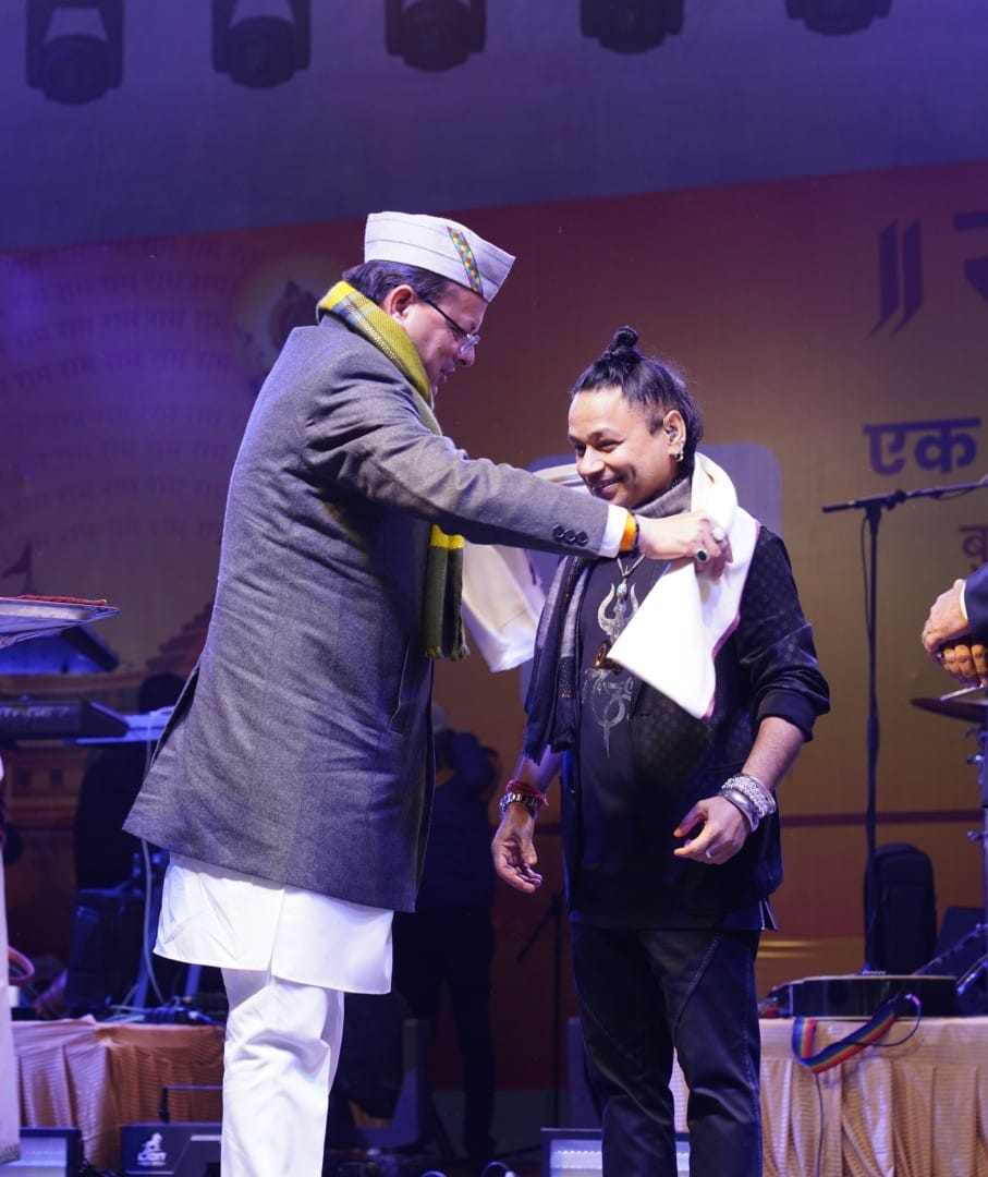 राज्यपाल लेफ्टिनेंट जनरल गुरमीत सिंह (से नि) एवं मुख्यमंत्री पुष्कर सिंह धामी ने बुधवार को सायं रेसकोर्स बन्नू स्कूल में आयोजित राम राग एक संध्या राम के नाम भजन संध्या में शामिल हुए। उन्होंने पद्म श्री कैलाश खेर और कन्हैया मित्तल को सम्मानित करते हुए कहा कि कैलाश खैर और कन्हैया मित्तल अपने भजनों के माध्यम से दुनिया में अपना नाम रोशन कर रहे हैं। उनके भजन भाव विभोर करने के साथ दिल को छू जाने का कार्य करते हैं। दोनों गायकों के भजनों से पूरा वातावरण राममय होने के साथ ही बड़ी संख्या में उपस्थित लोग पूरी तन्मयता से श्री राम की भक्ति में सराबोर नजर आये।
