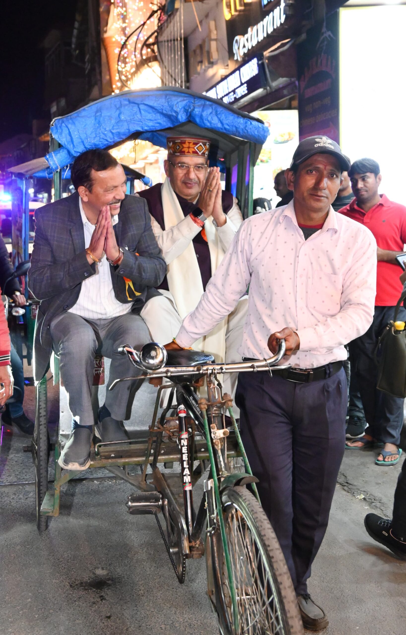 मसूरी, 26 अक्टूबर। कैबिनेट मंत्री गणेश जोशी ने शुक्रवार को मसूरी में एक कार्यक्रम से लौटते हुए शाम को मॉल रोड़ पर अपना काफिला छोड़ रिक्शा पर सवारी कर मॉल रोड़ पर नियमों के पालन करने का संदेश देते हुए नजर आए।