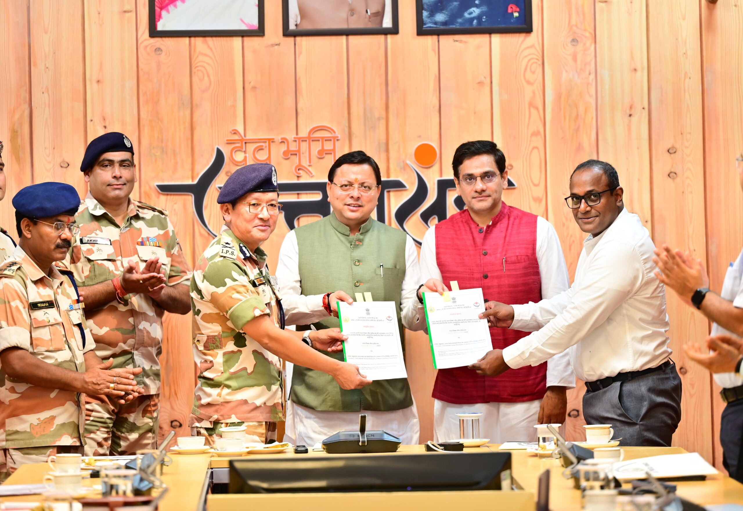 मुख्यमंत्री पुष्कर सिंह धामी और पशुपालन मंत्री श्री सौरभ बहुगुणा की उपस्थिति में बुधवार को मुख्यमंत्री आवास में उत्तराखण्ड सरकार और आईटीबीपी के मध्य समझौता किया गया। वाइब्रेंट विलेज योजना के अन्तर्गत आईटीबीपी की उत्तराखण्ड में तैनात वाहिनी के लिए स्थानीय उत्पादों जिन्दा बकरी/भेड़, चिकन और मछली की आपूर्ति के लिए किये गये समझौता ज्ञापन पर उत्तराखण्ड शासन से सचिव डॉ. बी.वी.आर.सी पुरूषोत्तम और आईटीबीपी से आईजी श्री संजय गुंज्याल ने हस्ताक्षर किये।