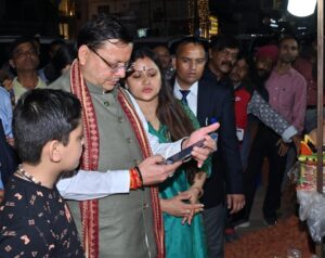 मुख्यमंत्री पुष्कर सिंह धामी ने बुधवार को दीपावली के अवसर पर सपरिवार चकराता रोड़ स्थित कुमार शॉप का भ्रमण कर स्थानीय विश्वकर्मा बंधुओं से द्वारा तैयार किये गए मिट्टी के दीपक तथा मूर्तियां क्रय की तथा डिजिटल पेमेन्ट के माध्यम से भुगतान किया।