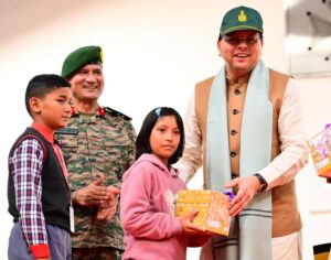 मुख्यमंत्री पुष्कर सिंह धामी ने गुरुवार को लैंसडाउन छावनी में आयोजित कार्यक्रम में प्रतिभाग करते हुए सैनिकों को दीपावली की बधाई दी। इस अवसर पर उन्होंने वार मेमोरियल पर पुष्प चक्र अर्पित कर शहीदों को श्रद्धांजलि दी। उन्होंने कहा कि सैनिक घर से दूर रहकर देश की सुरक्षा में तैनात रहते हैं। ऐसे में उनके बीच आकर दीपावली का त्योहार मनाना सौभाग्य की बात है। इस दौरान उन्होंने जवानों, वीर नारियों और बच्चों से भी भेंट की।