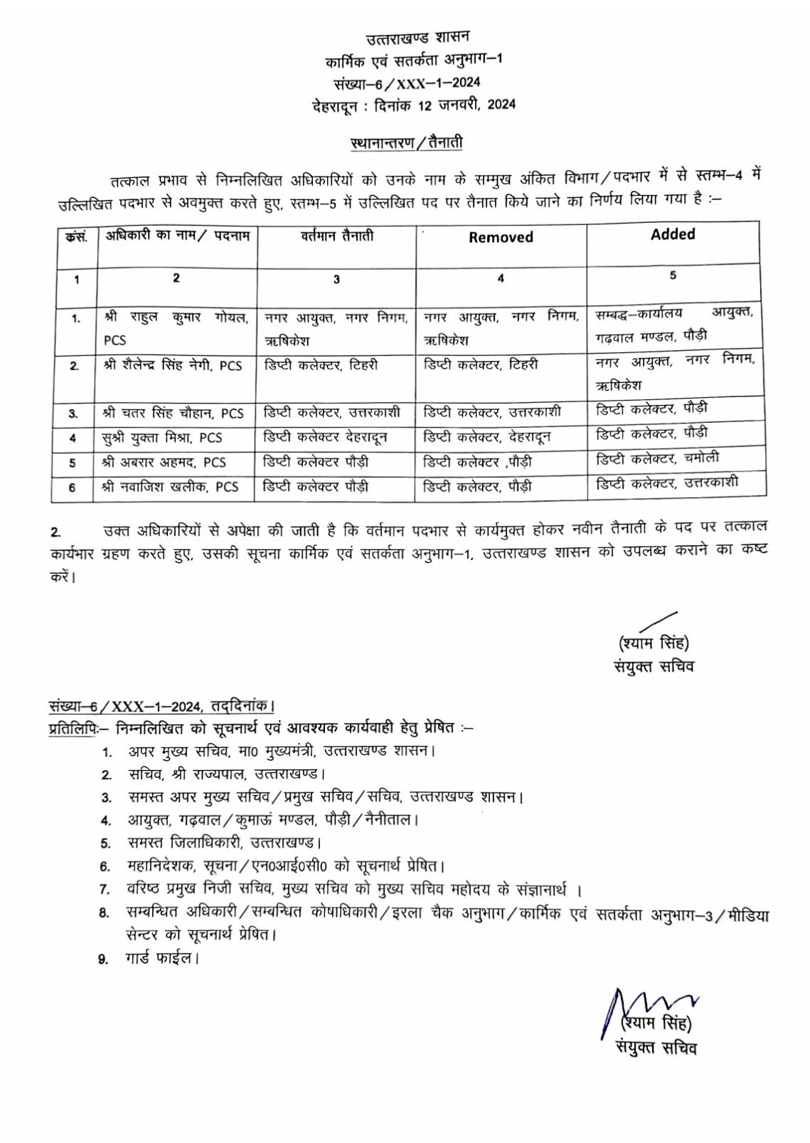 рдЙрддреНрддрд░рд╛рдЦрдВрдб рдХреЗ 6 рдкреАрд╕реАрдПрд╕ рдЕрдлрд╕рд░реЛрдВ рдХреЗ рддрдмрд╛рджрд▓реЗ
