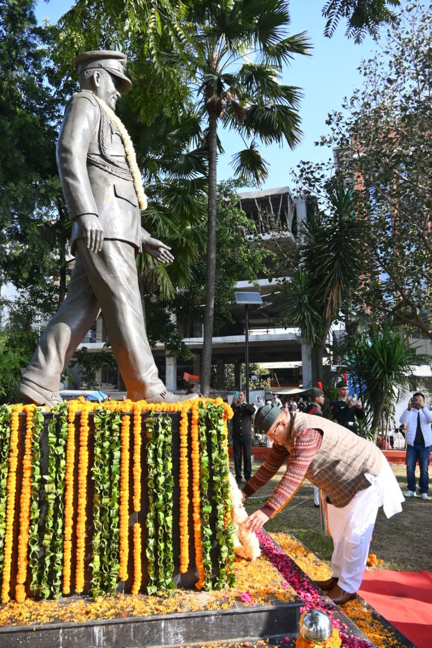 देहरादून, 08 दिसम्बर। सैनिक कल्याण मंत्री गणेश जोशी ने आज भारत के प्रथम सीडीएस जनरल बिपिन रावत की तृतीय पुण्यतिथि के अवसर पर देहरादून के कनक चौक पहुंच कर उनकी प्रतिमा पर अपनी और प्रदेश के मुख्यमंत्री पुष्कर सिंह धामी की ओर से पुष्पांजलि अर्पित कर भावपूर्ण श्रद्धांजलि दी।