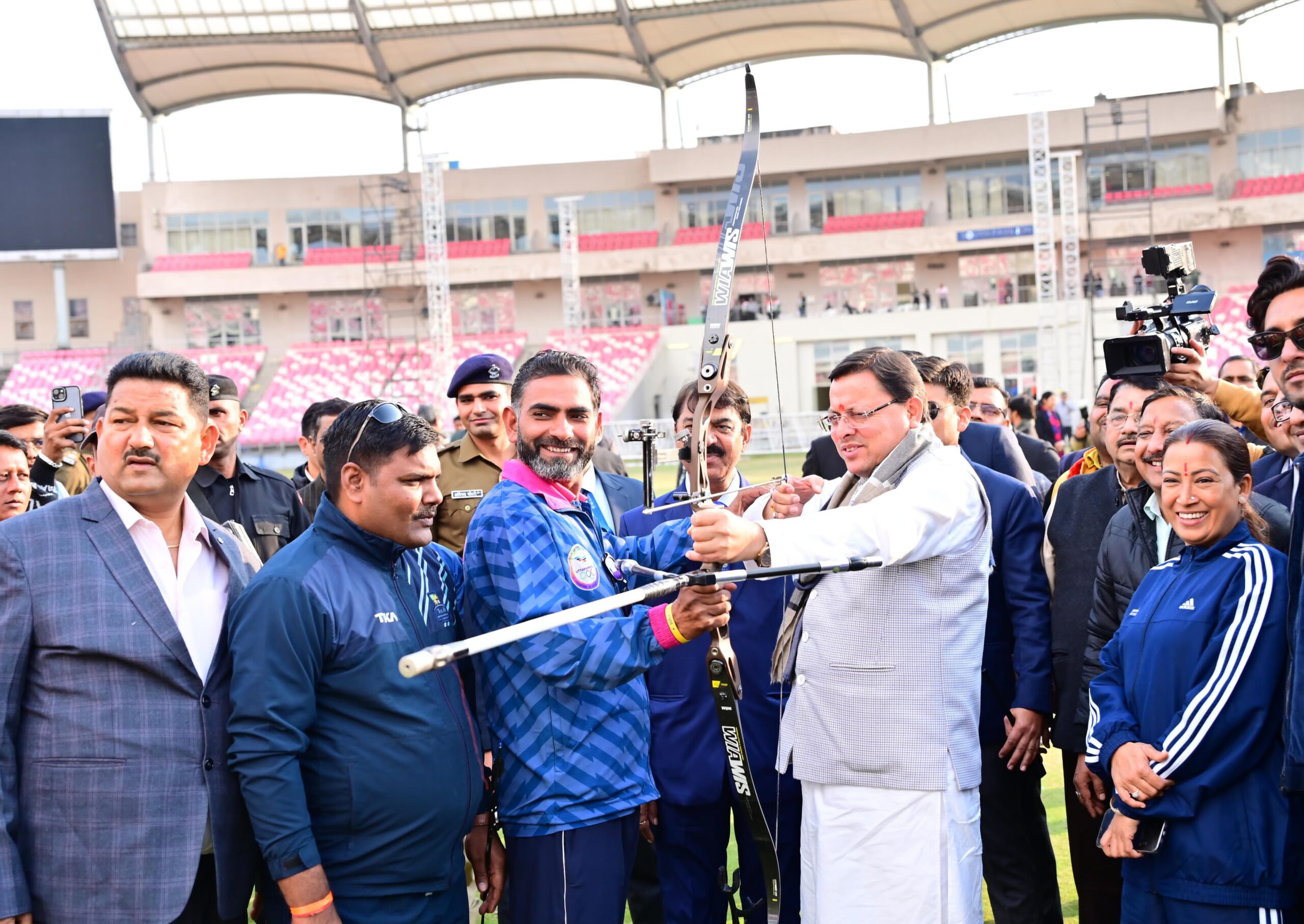 भारतीय ओलंपिक संघ से 38वें राष्ट्रीय खेलों के लिए बनाई गई गेम्स टेक्निकल कंडक्ट कमेटी की अध्यक्ष सुनैना कुमारी ने कहा कि राष्ट्रीय खेलों के लिए उत्तराखण्ड में तैयारियां बेहतर ढंग से हो रही हैं। अवस्थापना सुविधाओं का तेजी से विकास हो रहा है। कमेटी के सदस्य श्री दिग्विजय सिंह ने कहा कि उत्तराखण्ड में इन्फ्रास्टक्चर के क्षेत्र में भी बहुत अच्छा कार्य हुआ है। खेलों के आयोजन के लिए तैयारियां भी ठीक ढंग से चल रही हैं। उन्होंने कहा कि राष्ट्रीय खेलों के आयोजन से पहले हर स्टेडियम का ट्रायल होगा तो सभी खेल सफलतापूर्वक सम्पन्न हो सकेंगे। इस अवसर पर गुजरात एवं गोवा में आयोजित राष्ट्रीय खेलों के अनुभवों को भी वहां के अधिकारियों ने साझा किया। बैठक के बाद मुख्यमंत्री ने तीरंदाजी के खिलाडियों से भेंट की तथा स्वयं भी तीरंदाजी मेें प्रतिभाग कर खिलाडियों का उत्साह बढाया।