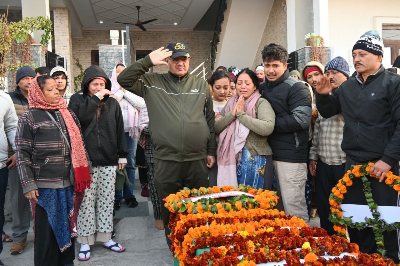 देहरादू, 15 दिसम्बर। सैनिक कल्याण मंत्री गणेश जोशी ने देहरादून निवासी और वर्तमान में अरूणांचल प्रदेश के मणिपुण में तैनात 49वीं बटालियन आईटीबीपी के जवान सुनील नाथ गोस्वामी के वीरगति प्राप्त होने पर उनके निजी आवास पहुंचकर गहरी शोक संवेदना व्यक्त करते हुए अपनी तथा प्रदेश के मुख्यमंत्री पुष्कर सिंह धामी की तरफ से श्रद्धांजलि अर्पित की। इस दौरान सैनिक कल्याण मंत्री गणेश जोशी ने परिवारजनों को ढांढस भी बंधाया और परिवार जनों को हरसंभव मदद का भरोसा भी दिलाया। गौरतलब है कि आईटीबीपी के जवान सुनील नाथ गोस्वामी (54) वर्ष मणिपुर में तैनात थे। बीते शुक्रवार को ड्यूटी के दौरान हृदय गति रुकने से उनकी मौत हो गई।