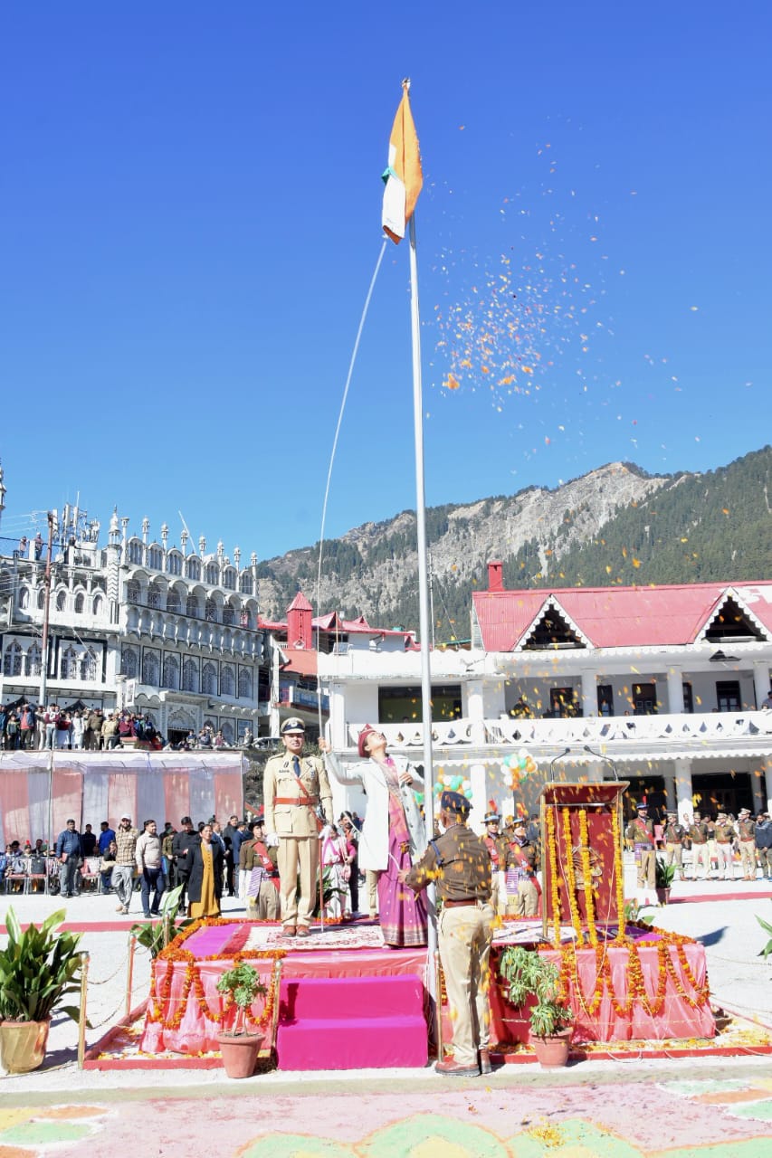 नैनीताल के डीएसए मैदान में पुलिस और पीएसी के जवानों ने कैबिनेट मंत्री रेखा आर्या को सलामी दी।कैबिनेट मंत्री रेखा आर्या ने विशेष वाहन पर सवार होकर परेड का निरीक्षण किया। इस अवसर पर उन्होंने कहा कि संविधान रचयिता बाबा भीमराव अंबेडकर ने कहा था कि किसी समाज की प्रगति उस समाज की महिलाओं की प्रगति के पैमाने पर मापी जाती है। केंद्र और राज्य सरकार ने इसी विचार को चरितार्थ करते हुए प्रदेश की महिलाओं को सशक्त बनाने के लिए तमाम योजनाएं शुरू की है। महिला कल्याण एवं बाल विकास मंत्री रेखा आर्या ने कहा कि 2014 से पहले प्रदेश का लिंगानुपात की स्थिति खराब थी लेकिन अब यह बढ़कर 960 प्रति हजार हो गया है। उन्होंने कहा कि प्रदेश में लागू होने वाला यूसीसी कानून महिलाओं के सशक्तिकरण की दिशा में एक बड़ा कदम साबित होगा। मंत्री ने कहा कि अब प्रदेश की बेटियां परिवार में बेटों की तरह संपत्ति पर मालिकाना हक पा सकेंगी। मंत्री ने कहा कि पहले लोग सवाल उठाते थे कि हम नेशनल गेम्स जैसा बड़ा खेल आयोजन कैसे कर पाएंगे लेकिन प्रदेश सरकार ने अंतरराष्ट्रीय स्तर की खेल सुविधाए तैयार करके इन आशंकाओं को निर्मूल साबित कर दिया है। उन्होंने कहा कि संभवत उत्तराखंड पहला ऐसा राज्य है जो राष्ट्रीय खेलों की सभी इवेंट अपने प्रदेश की सीमा के भीतर ही करवा पा रहा है। इस अवसर पर जिलाधिकारी वंदना सिंह, डीआईजी योगेंद्र सिंह रावत, एसएसपी पीएन मीणा, अपर जिला अधिकारी पी आर चौहान, सयुंक्त मजिस्ट्रेट वरुणा अग्रवाल, एसडीएम प्रमोद कुमार आदि मौजूद रहे।