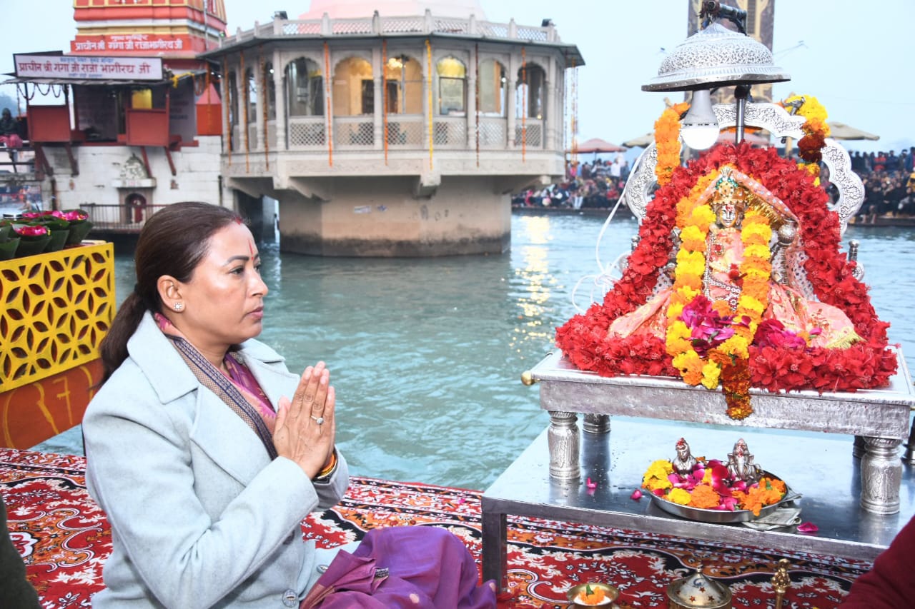 *हरिद्वार।* खेल मंत्री रेखा आर्या ने रविवार को हरिद्वार में मां गंगा की आरती में हिस्सा लिया और आगामी राष्ट्रीय खेलों में उत्तराखंड के खिलाड़ियों की जीत के लिए मां गंगा का आशीर्वाद मांगा।