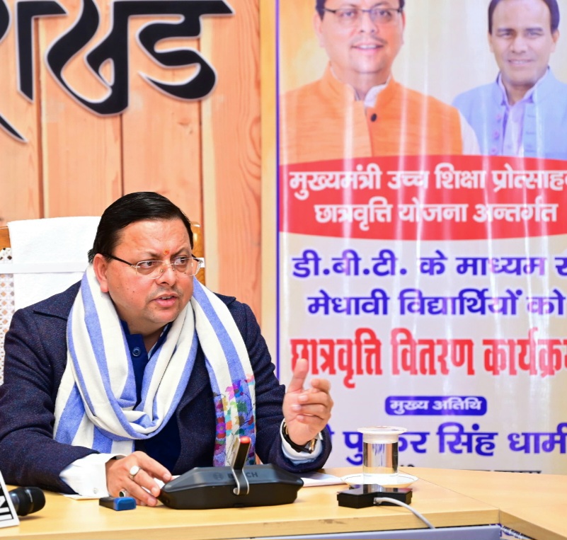 मुख्यमंत्री धामी ने शनिवार को मुख्यमंत्री आवास से मुख्यमंत्री उच्च शिक्षा प्रोत्साहन छात्रवृत्ति योजना के प्रथम चरण में 241 विद्यार्थियों के खाते में डी०बी०टी० के माध्यम से 33 लाख 51 हजार रूपये की धनराशि प्रदान की। राज्य के विश्वविद्यालय परिसरों एवं शासकीय महाविद्यालयों में स्नातक प्रथम वर्ष में प्रवेश करने वाले छात्र-छात्राओं को यह धनराशि प्रदान की गई। स्नातक प्रथम वर्ष में प्रवेश करने वाले इन छात्र-छात्राओं को 12वीं के परीक्षाफल में न्यूनतम 80 प्रतिशत प्राप्तांक और महाविद्यालय स्तर पर तैयार संकायवार मेरिट लिस्ट अनुसार प्रथम, द्वितीय एवं तृतीय को क्रमशः 03 हजार, 02 हजार एवं 1500 रूपये की मासिक छात्रवृत्ति प्रदान की जा रही है। अन्य कक्षाओं हेतु छात्रवृत्ति वितरण संबंधित संस्थान स्तर से समर्थ पोर्टल पर वेरिफिकेशन के उपरान्त किया जाएगा। मुख्यमंत्री ने इस अवसर पर विभिन्न महाविद्यालयों और विश्वविद्यालयों से जुड़े विद्यार्थियों के साथ संवाद भी किया।मुख्यमंत्री पुष्कर सिंह धामी ने मुख्यमंत्री उच्च शिक्षा प्रोत्साहन छात्रवृत्ति योजना से लाभान्वित होने वाले सभी विद्यार्थियों को शुभकामनाएं देते हुए कहा कि इस योजना को शुरू करने का मुख्य उद्देश्य सामान्य परिवारों के छात्र-छात्राओं की प्रतिभाओं को आगे लाना है।