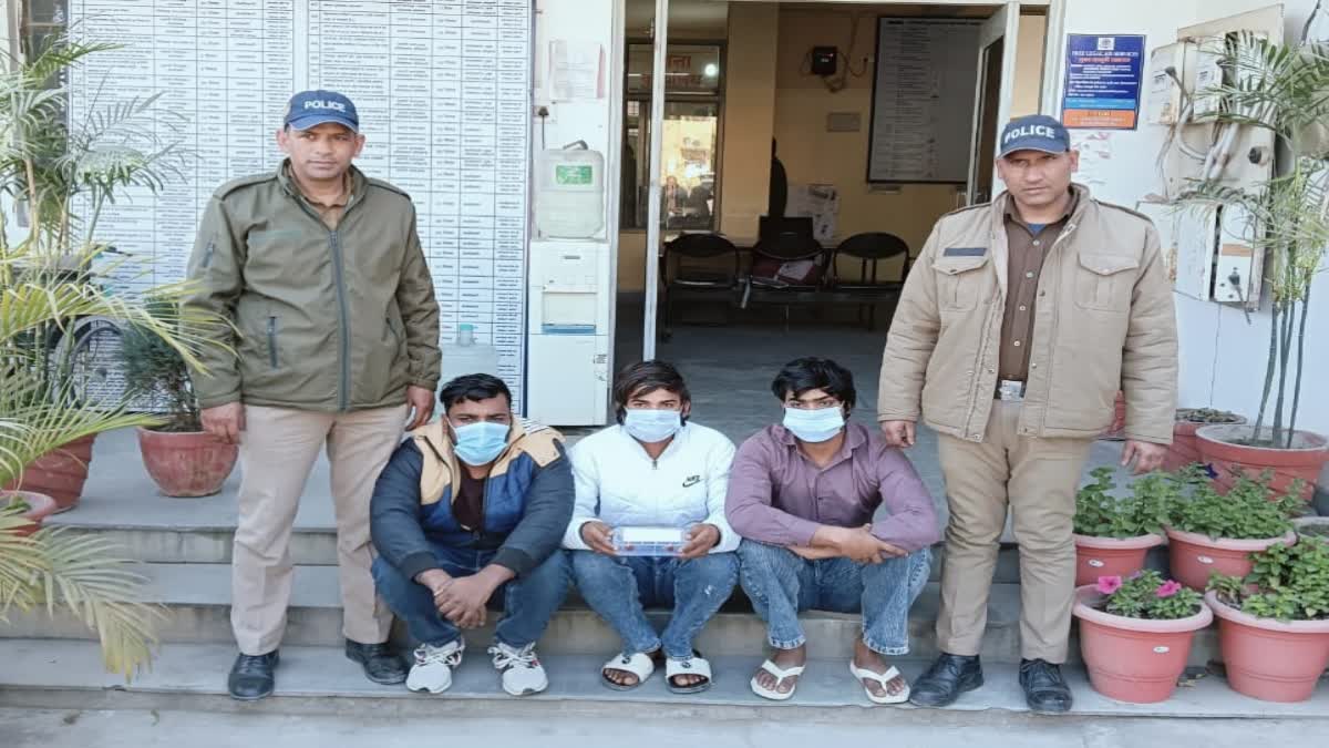 सचिन कुमार(22) पुत्र रामनाथ प्रसाद निवासी- कापसीड़ा निकट पुलिस चौकी कापसीडा बॉर्डर मेट्रो स्टेशन द्वारका, थाना द्वारका, नई दिल्ली मूल पता- निवासी ग्राम बलिया, थाना पारसा, जिला छपरा, बिहार हाल पता- आई0 ब्लाँक ओम विहार थाना पालमपुर, गुडगाँव, विशाल तिवारी(24) पुत्र रमेश तिवारी निवासी- कापसीड़ा निकट पुलिस चौकी कापसीडा बॉर्डर मेट्रो स्टेशन द्वारका, थाना द्वारका, नई दिल्ली मूल पता- ग्राम आमी थाना दिग्वाडा जिला छपरा, बिहार, पवन कुमार(24) पुत्र प्रमोद ठाकुर निवासी- ग्राम बेलना, थाना नागर, जिला मोतीहारी, पूर्वी चंपारण, बिहार हाल पता- रिश्तेदार राहुल जीजा के घर, ओम विहार, थाना पालमपुर, गुड़गांव, हाल पता- सैक्टर 23 ए गली नम्बर 07 संडे मार्केट थाना पालमपुर, गुडगाँव के रूप में हुई है।