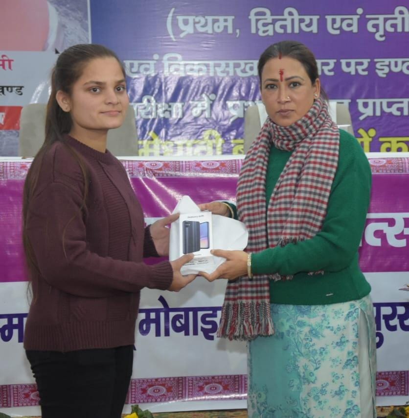 कैबिनेट मंत्री रेखा आर्या ने राष्ट्रीय बालिका दिवस के सुवसर पर “मेधावी बालिका शिक्षा प्रोत्साहन”कार्यक्रम में प्रतिभाग किया।कार्यक्रम का शुभारंभ दीप प्रज्वलित कर किया गया।इस अवसर पर कैबिनेट मंत्री ने बालिकाओ के साथ संवाद किया और सरकार द्वारा चलाई जा रही योजनाओं पर बालिकाओं के साथ बात की।बालिकाओ द्वारा सरकार द्वारा चलाई जा रही योजनाओं पर खुशी व्यक्त की गई। इस दौरान बालिका शिक्षा प्रोत्साहन कार्यक्रम के तहत वर्ष 2022 व 2023 की 318 मेधावी बालिकाओं को स्मार्ट फोन देकर सम्मानित किया गया।