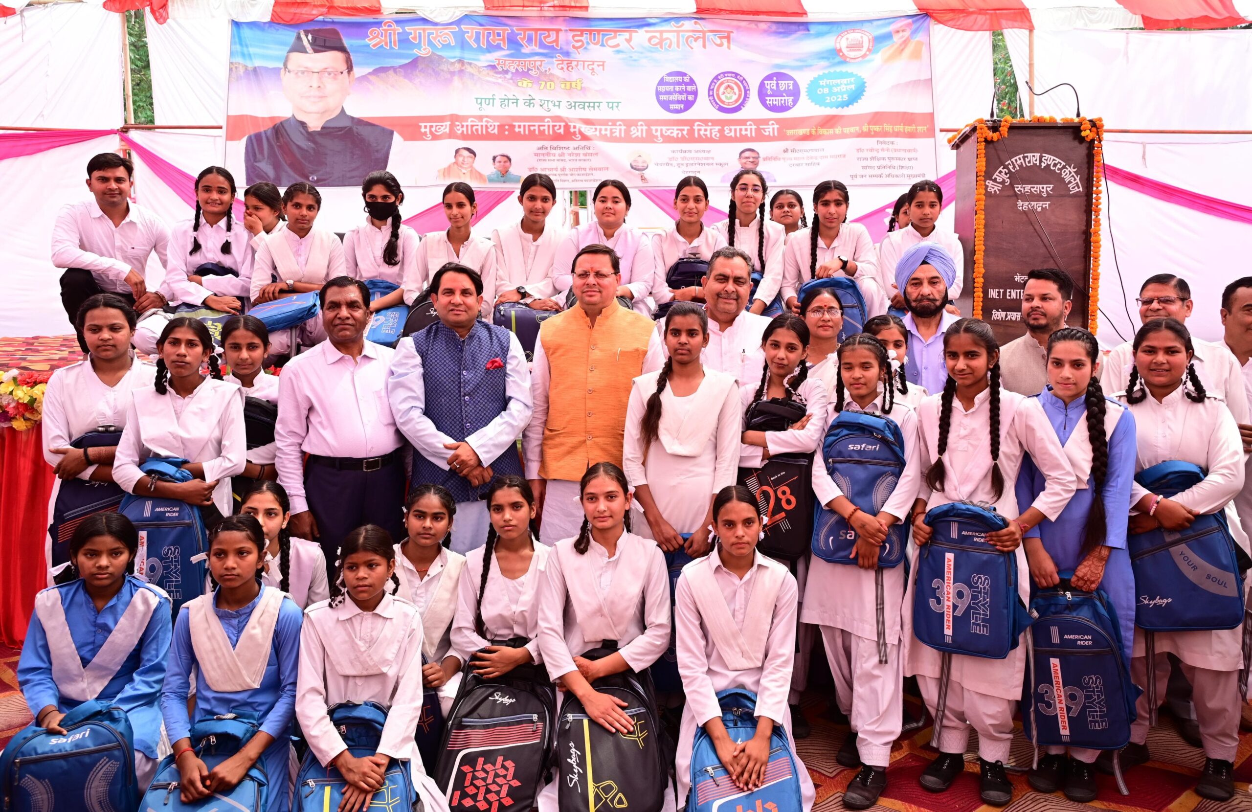 मुख्यमंत्री पुष्कर सिंह धामी ने मंगलवार को देहरादून के सहसपुर स्थित श्री गुरु राम राय इंटर कॉलेज के 70 वर्ष पूर्ण होने पर आयोजित कार्यक्रम में भाग लिया। इस अवसर पर उन्होंने कई वरिष्ठजनों को सम्मानित किया और स्कूली बच्चों को बैग वितरित किए।