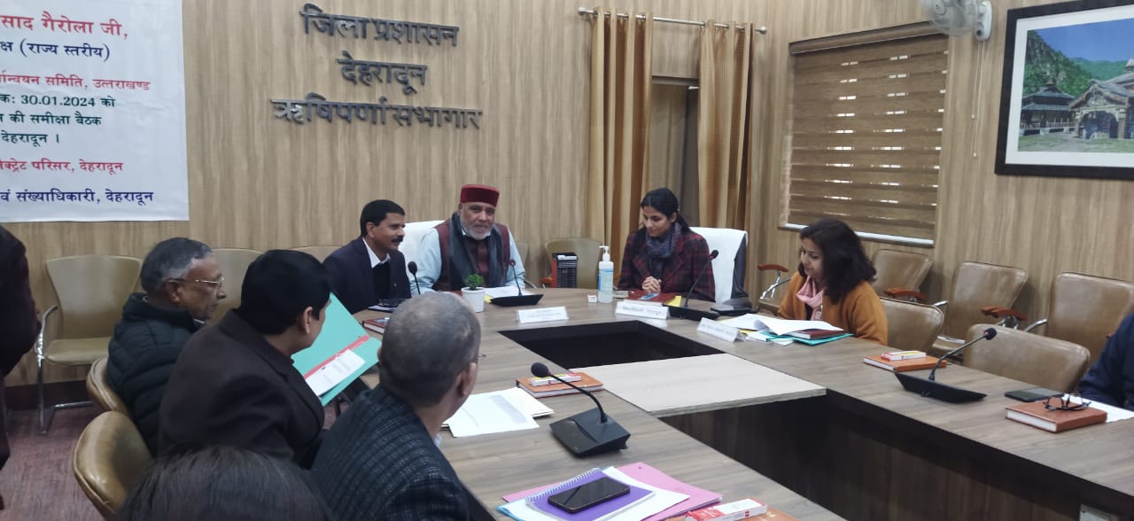 20 सूत्रीय कार्यक्रम कार्यान्वयन समिति के उपाध्यक्ष ज्योति प्रसाद गैरोला ने डीएम कार्यालय स्थित सभागार में संबंधित अधिकारियों के साथ बैठक की। इस दौरान उन्होंने सभी अधिकारियों को जनता से जुड़ी सभी जनहित की योजनाओं के क्रियान्वन में तेजी लाने के निर्देश दिए। इस दौरान ज्योति प्रसाद गैरोला ने कहा कि कि 20 सूत्रीय कार्यक्रम के सभी इंडिकेटरों के बीच आज समीक्षा बैठक की गई है। अक्टूबर माह के 20 सूत्रीय कार्यक्रम समीक्षा में देहरादून जिला समूचे प्रदेश में पहले स्थान पर आया था, लेकिन नवंबर माह की समीक्षा में देहरादून जिला दूसरे नंबर पर आया है। उन्होंने कहा कि लगातार अधिकारी योजनाओं का क्रियान्वयन और उसका लाभ जनता तक पहुंचाने की दिशा में देहरादून की पोजीशन को बेहतर बनाए रखते हैं। गैरोला का कहना है कि आने वाले समय में जो कमियां है, उन कमियों में सुधार किए जाने के प्रयास किए जाएंगे।